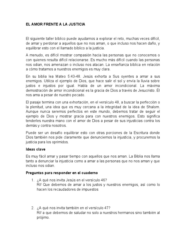 R// Que debemos de amar a los justos y nuestros enemigos, así como lo