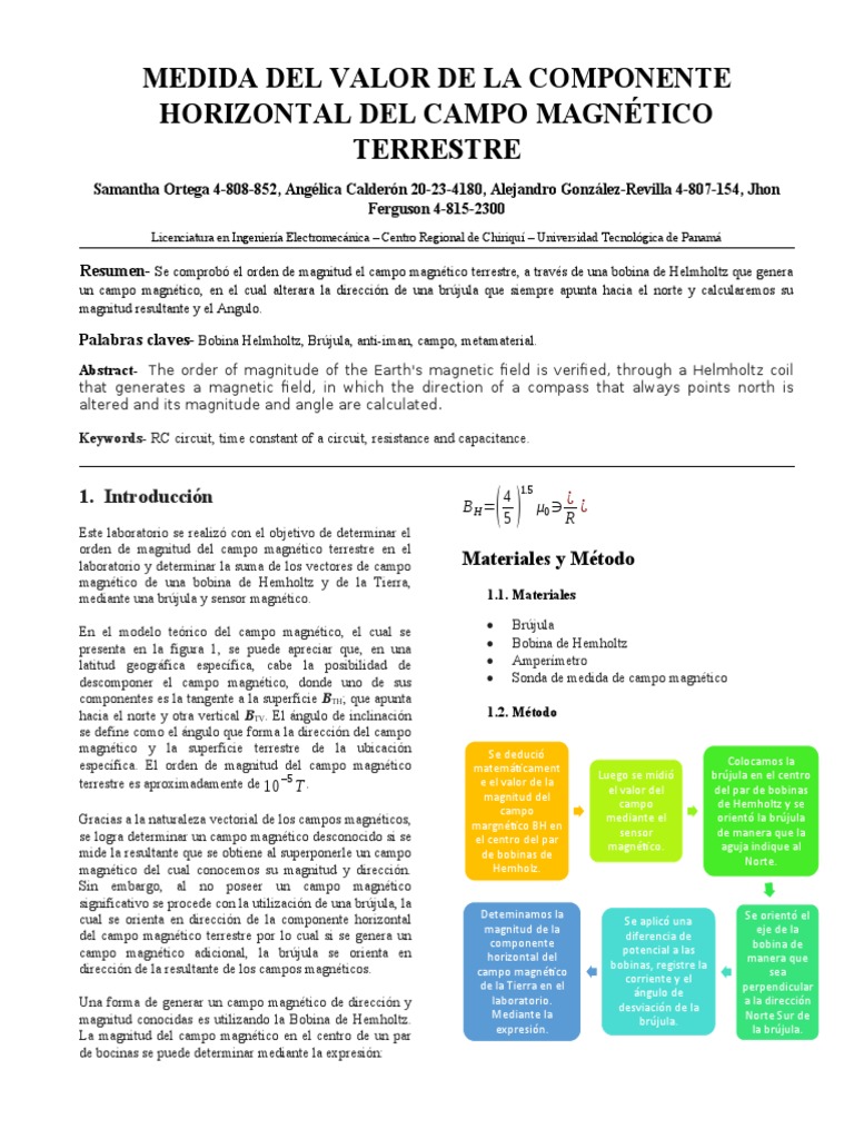 Resumen- Se comprobó el orden de magnitud el campo magnético terrestre, a través de una bobina de Helmholtz que genera