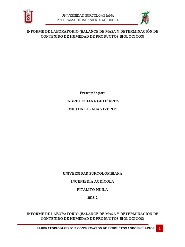 INFORME DE LABORATORIO (BALANCE DE MASA Y DETERMINACIÓN DE