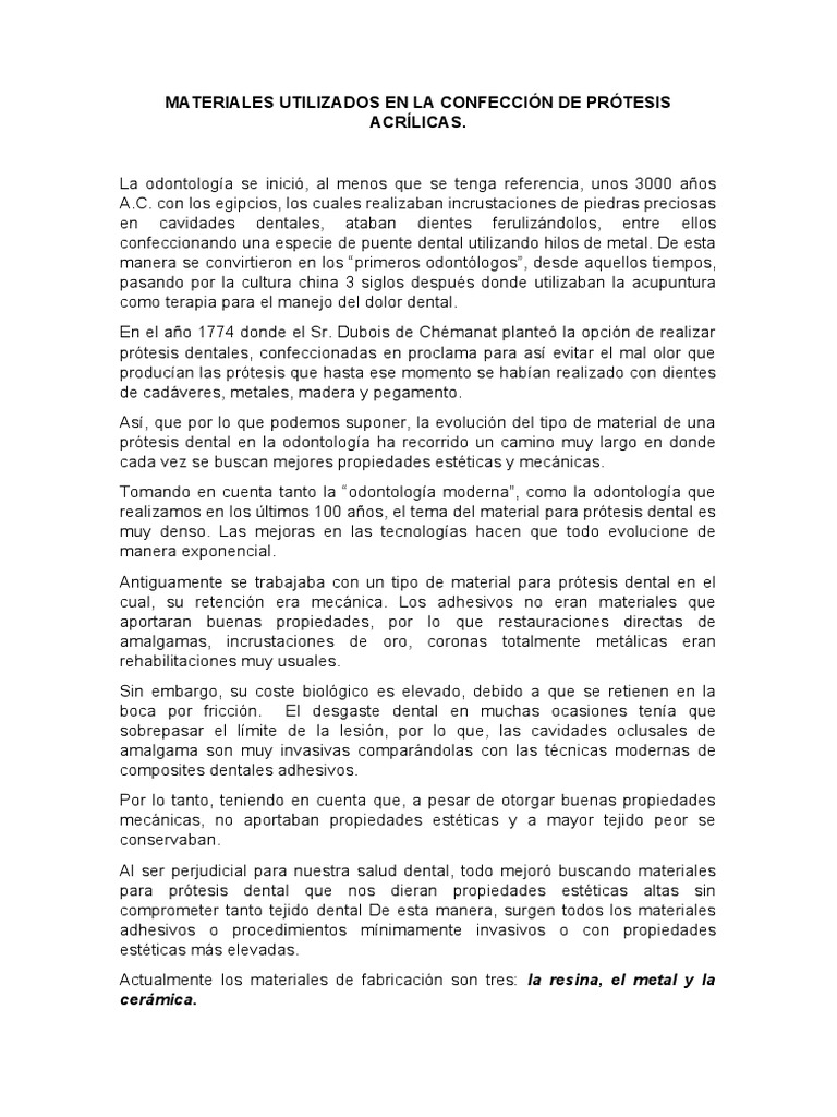 realizamos en los últimos 100 años, el tema del material para prótesis dental es