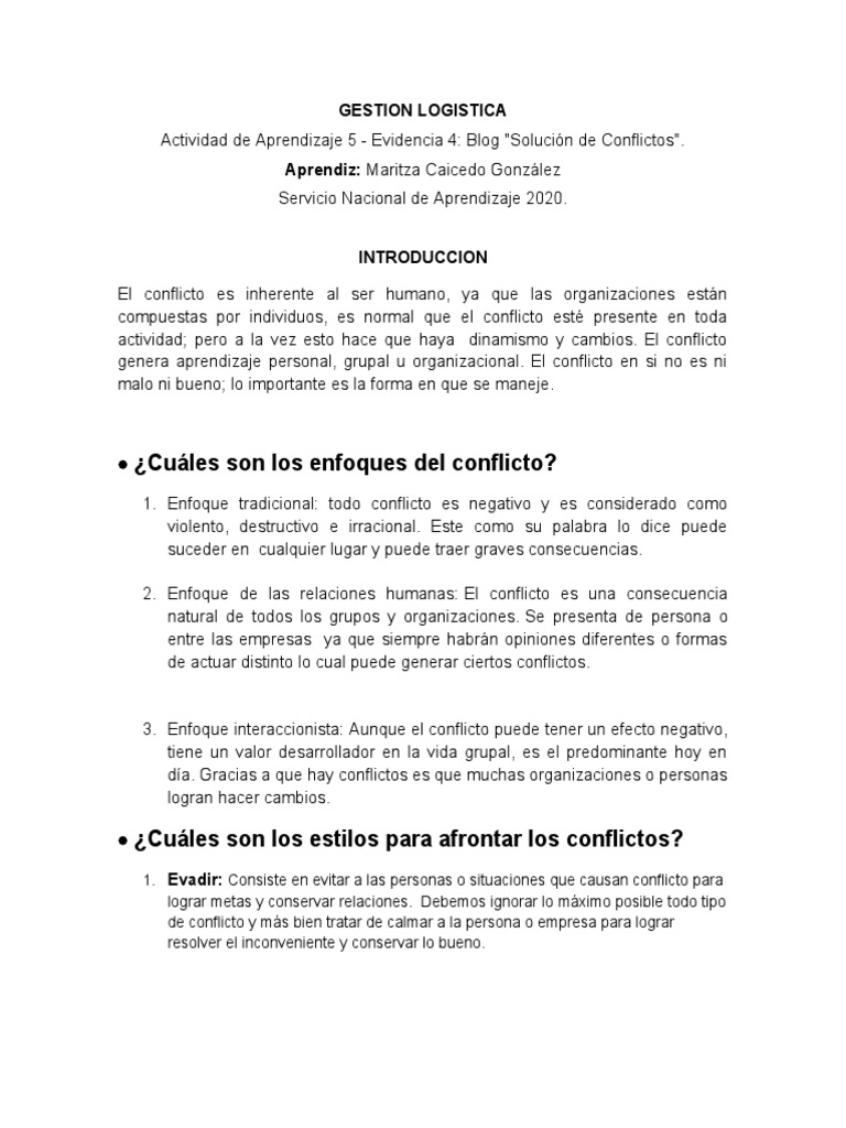 Actividad de Aprendizaje 5 - Evidencia 4: Blog "Solución de Conflictos".