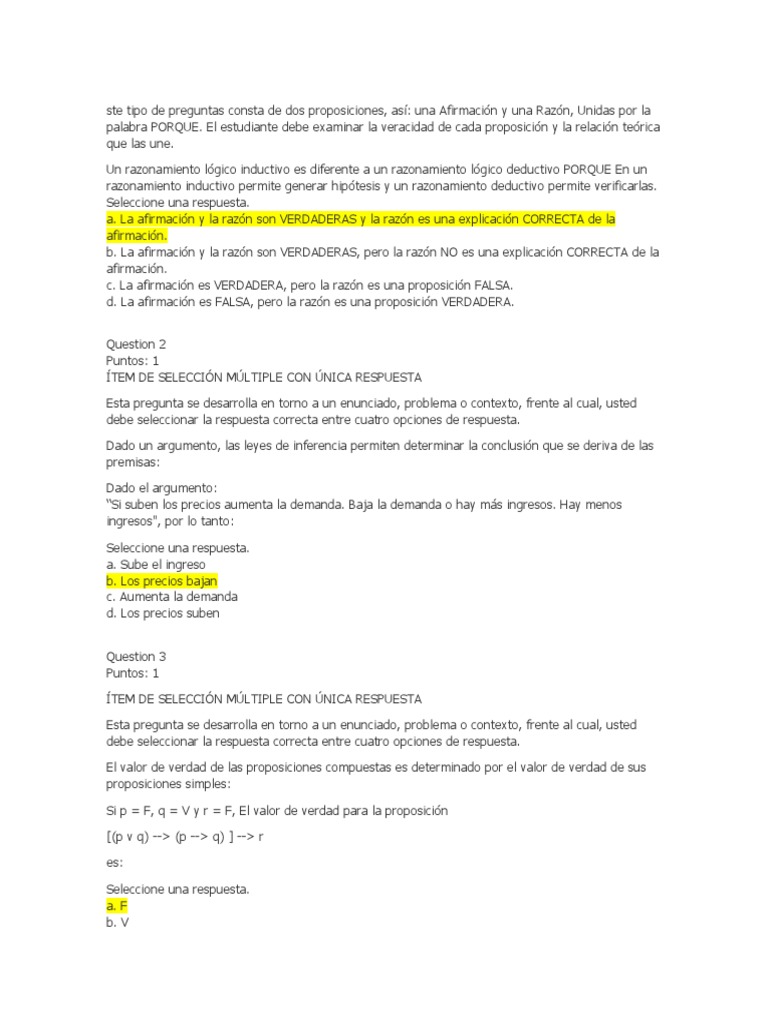 ste tipo de preguntas consta de dos proposiciones, así: una Afirmación y una Razón, Unidas por la