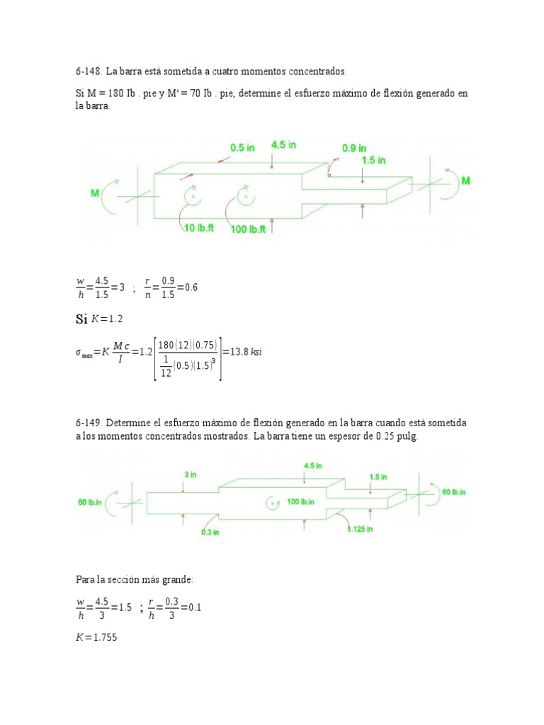 6-149. Determine el esfuerzo máximo de flexión generado en la barra cuando está sometida