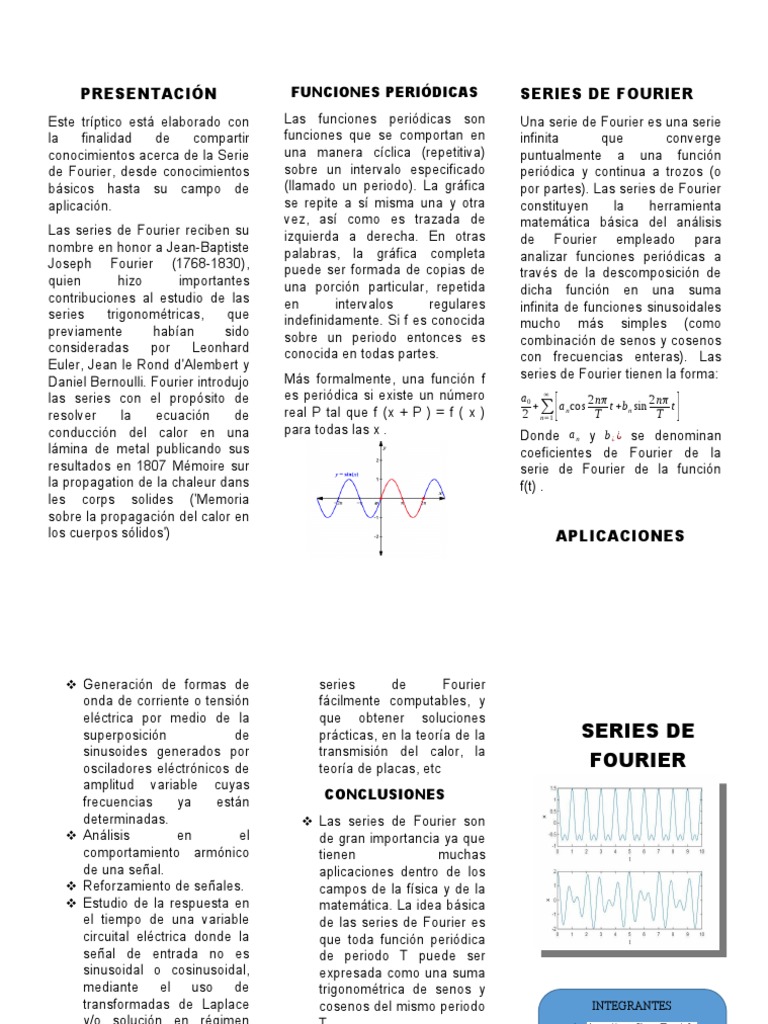 Este tríptico está elaborado con Las funciones periódicas son Una serie de Fourier es una serie
