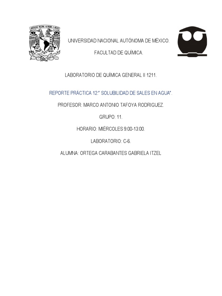 REPORTE PRÁCTICA 12:” SOLUBILIDAD DE SALES EN AGUA”.