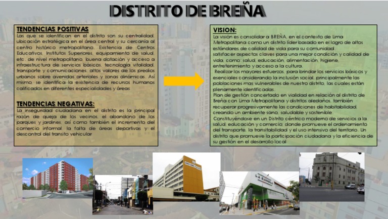 Las que se identifican en el distrito son su centralidad, La visión es consolidar a BREÑA, en el contexto de Lima