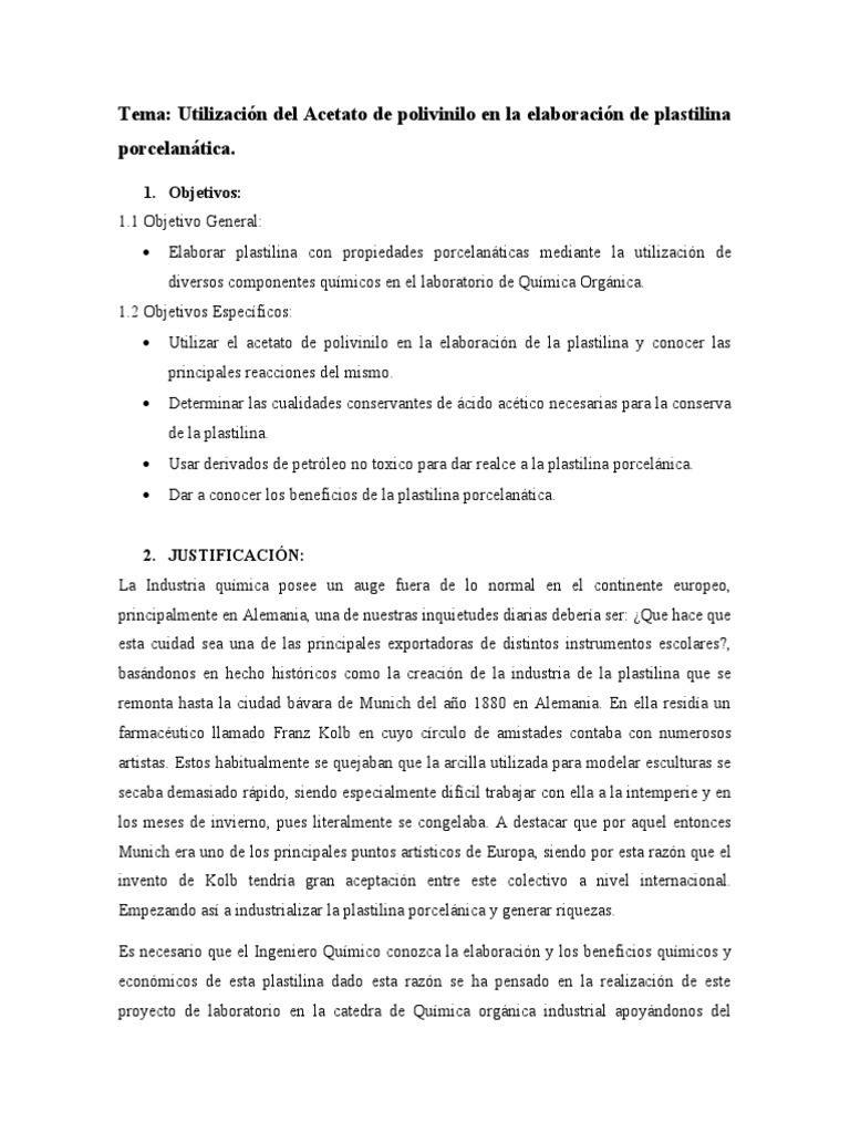 Tema: Utilización del Acetato de polivinilo en la elaboración de plastilina