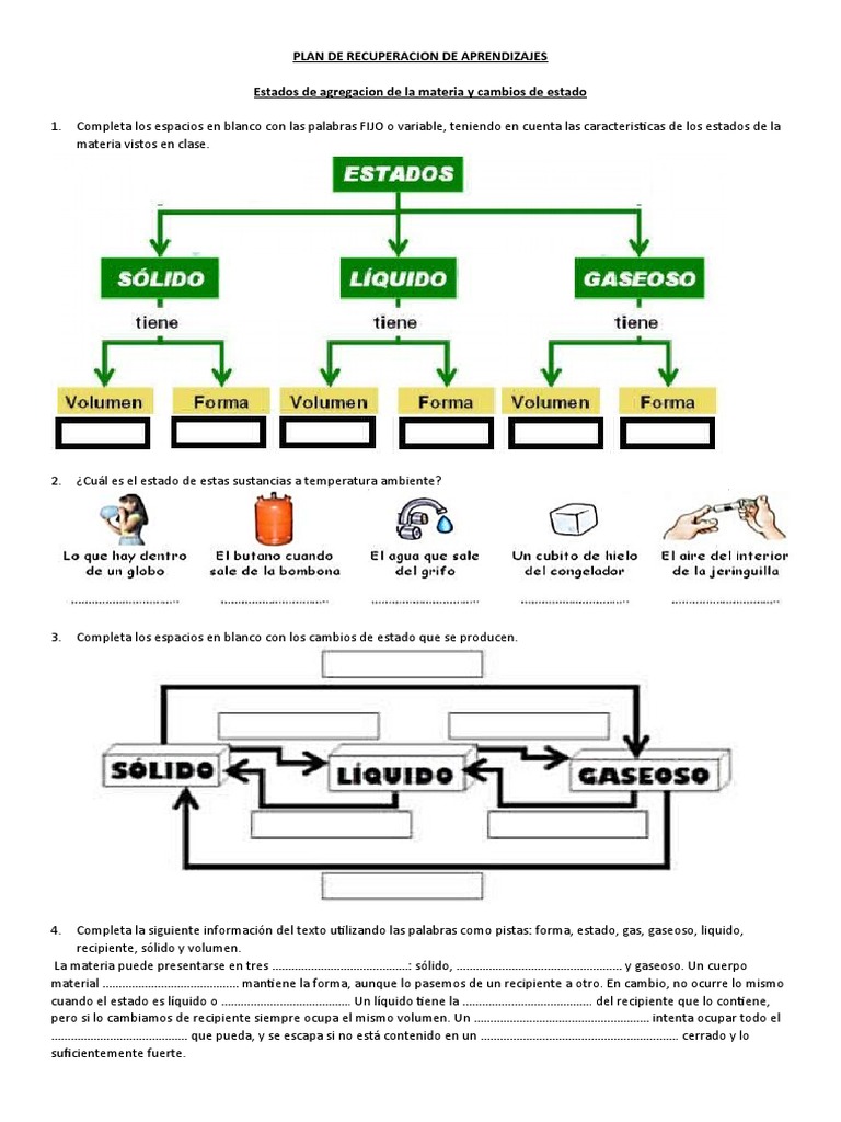 4. Completa la siguiente información del texto utilizando las palabras como pistas: forma, estado, gas, gaseoso, liquido,
