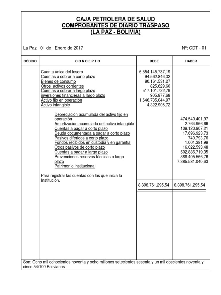 La Paz 01 de Enero de 2017 No: CDT - 01