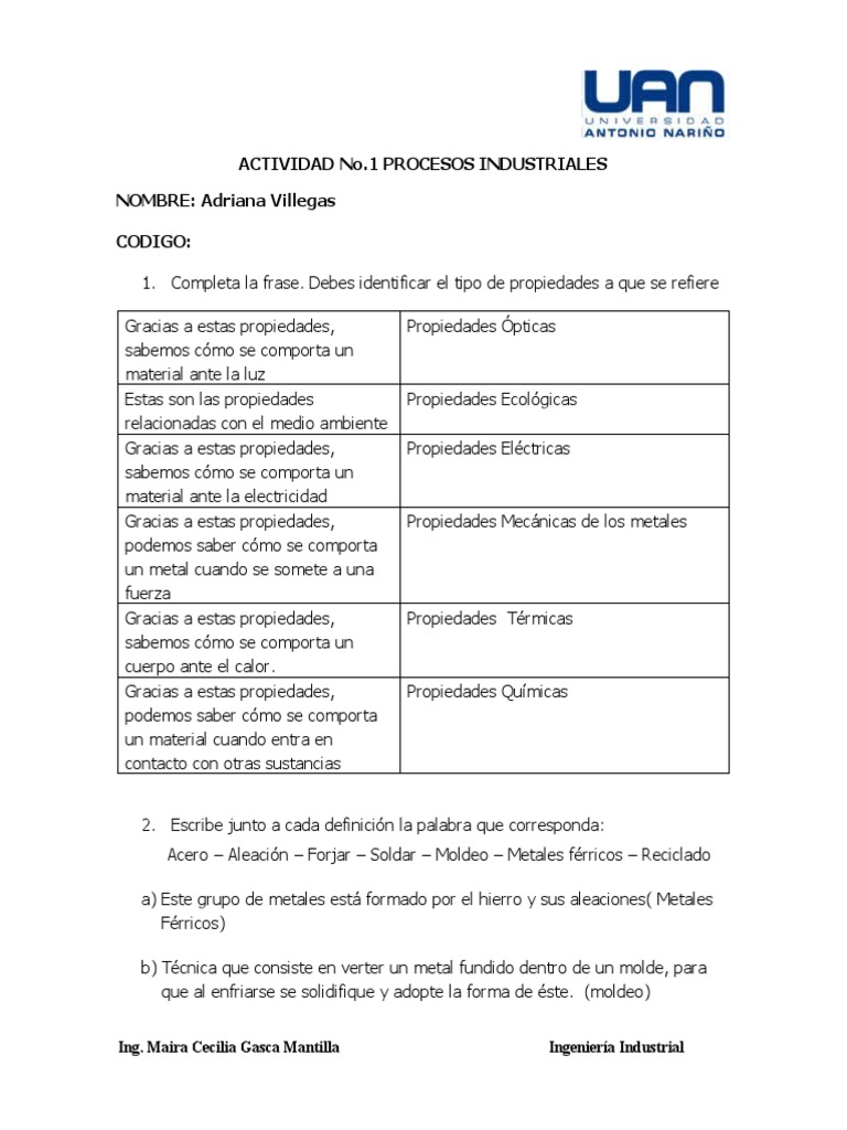 1. Completa la frase. Debes identificar el tipo de propiedades a que se refiere