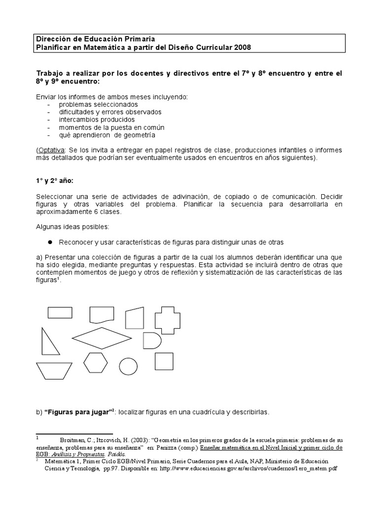 Broitman, C.; Itzcovich, H. (2003): “Geometría en los primeros grados de la escuela primaria: problemas de su