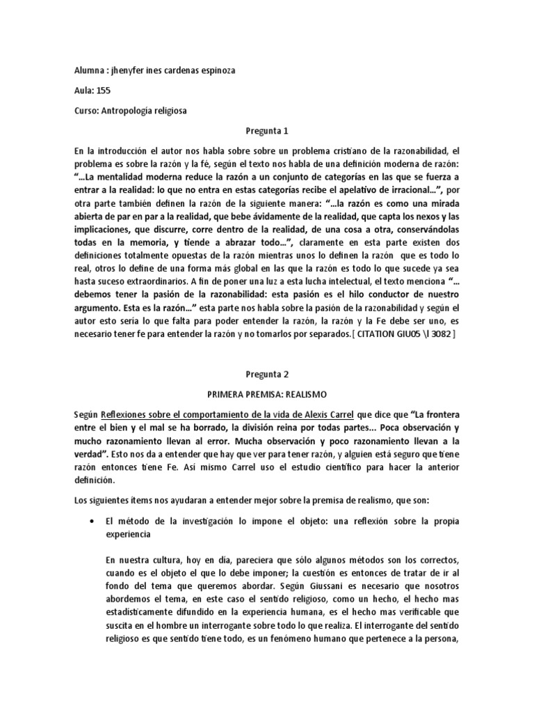 razón entonces tiene Fe. Así mismo Carrel uso el estudio científico para hacer la anterior