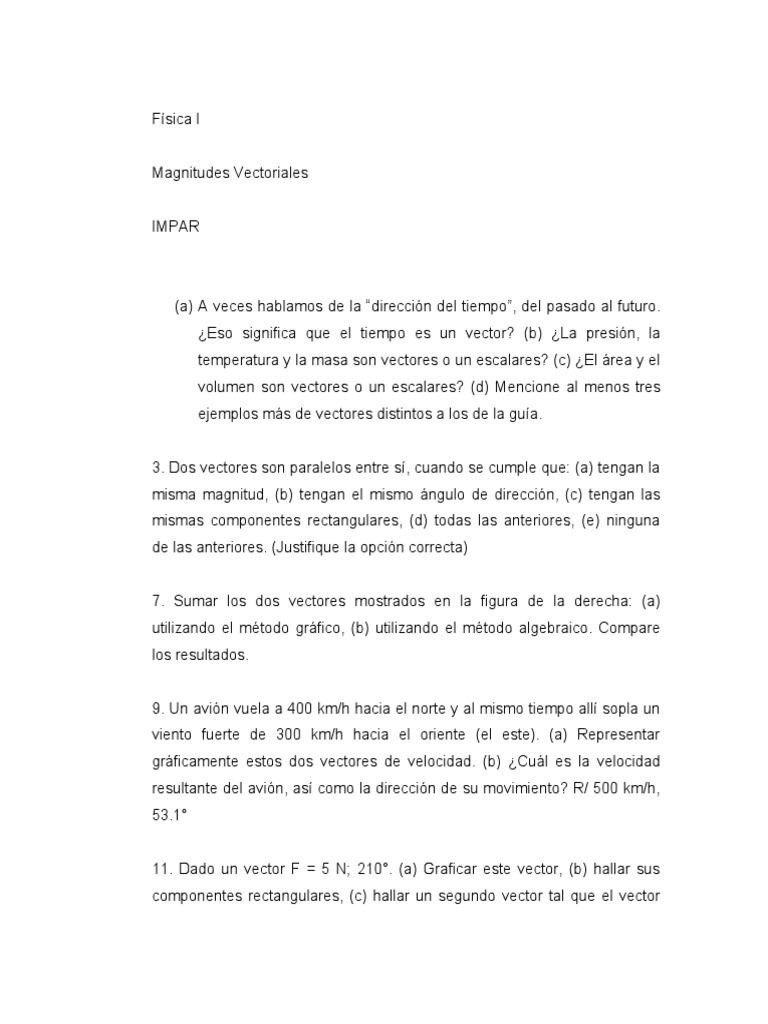 3. Dos vectores son paralelos entre sí, cuando se cumple que: (a) tengan la