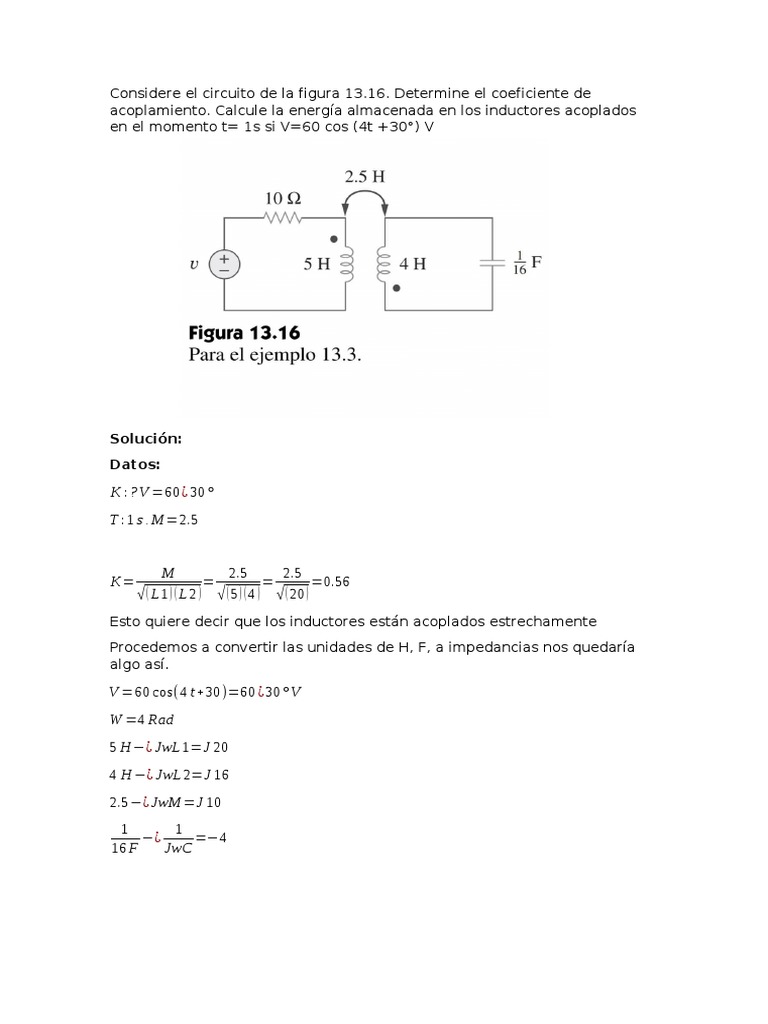 acoplamiento. Calcule la energía almacenada en los inductores acoplados