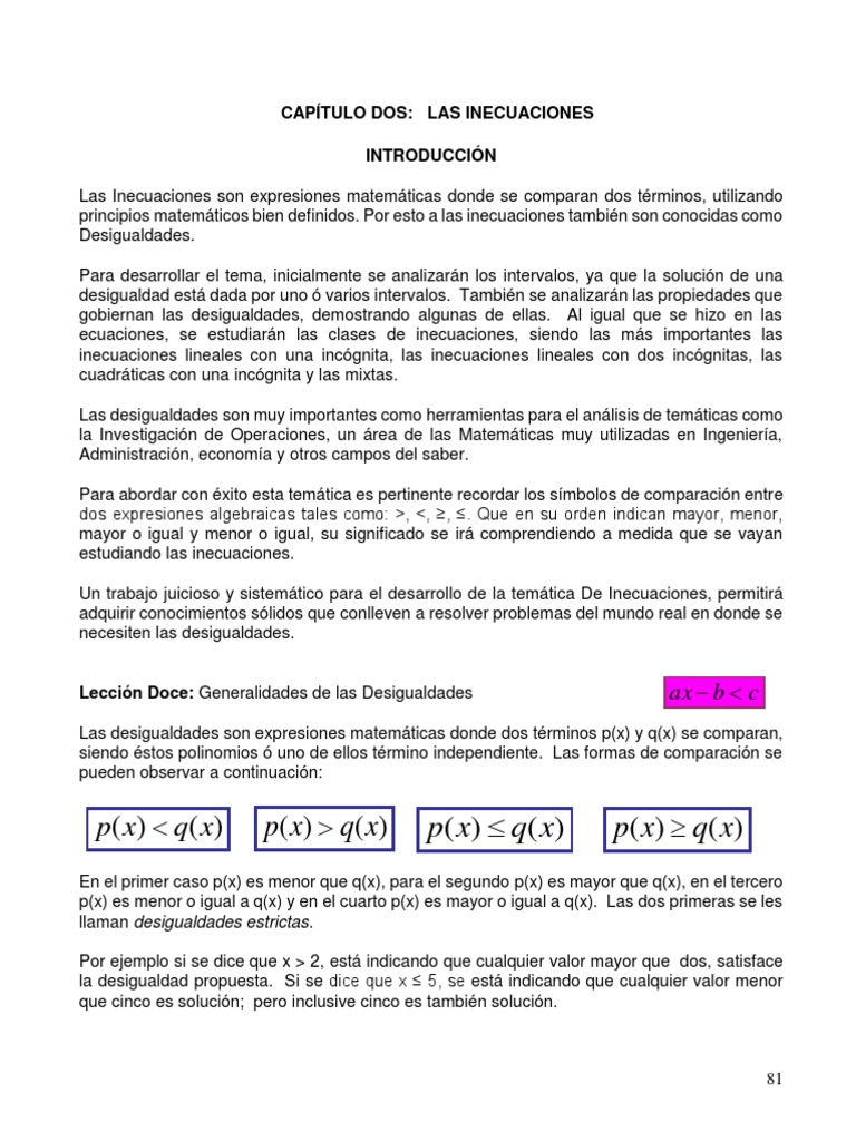 principios matemáticos bien definidos. Por esto a las inecuaciones también son conocidas como