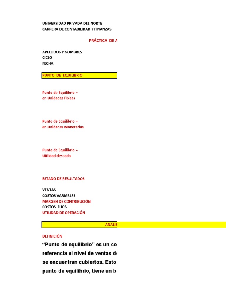 PRACTICA DE PUNTO DE EQUILIBRIO