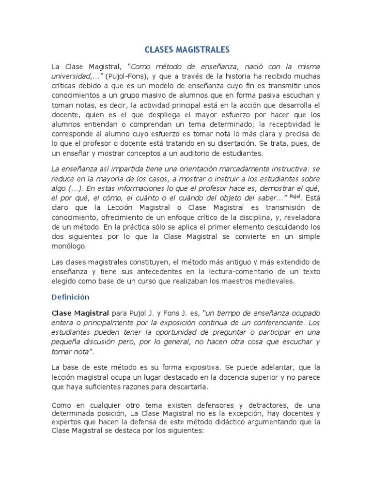 de desarrollar una Clase Magistral, que depende mucho de la habilidad del