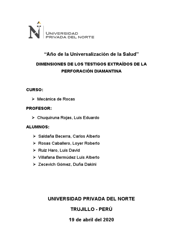 de realizar la perforación diamantina para extraer estos testigos.