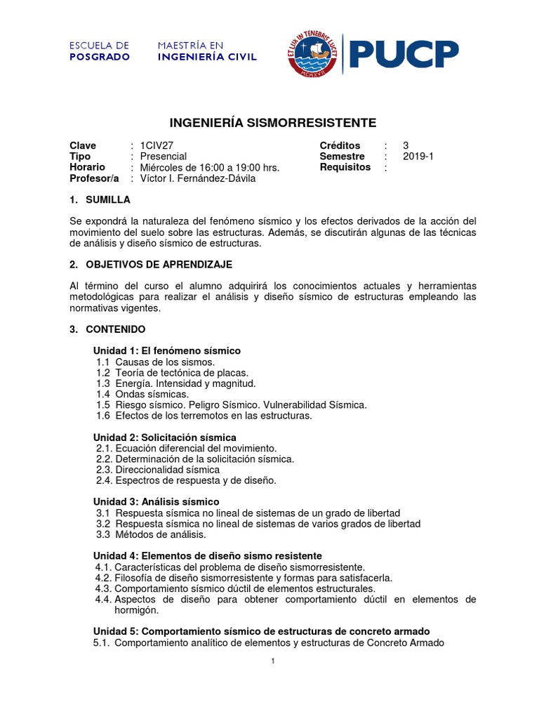 Unidad 5: Comportamiento sísmico de estructuras de concreto armado