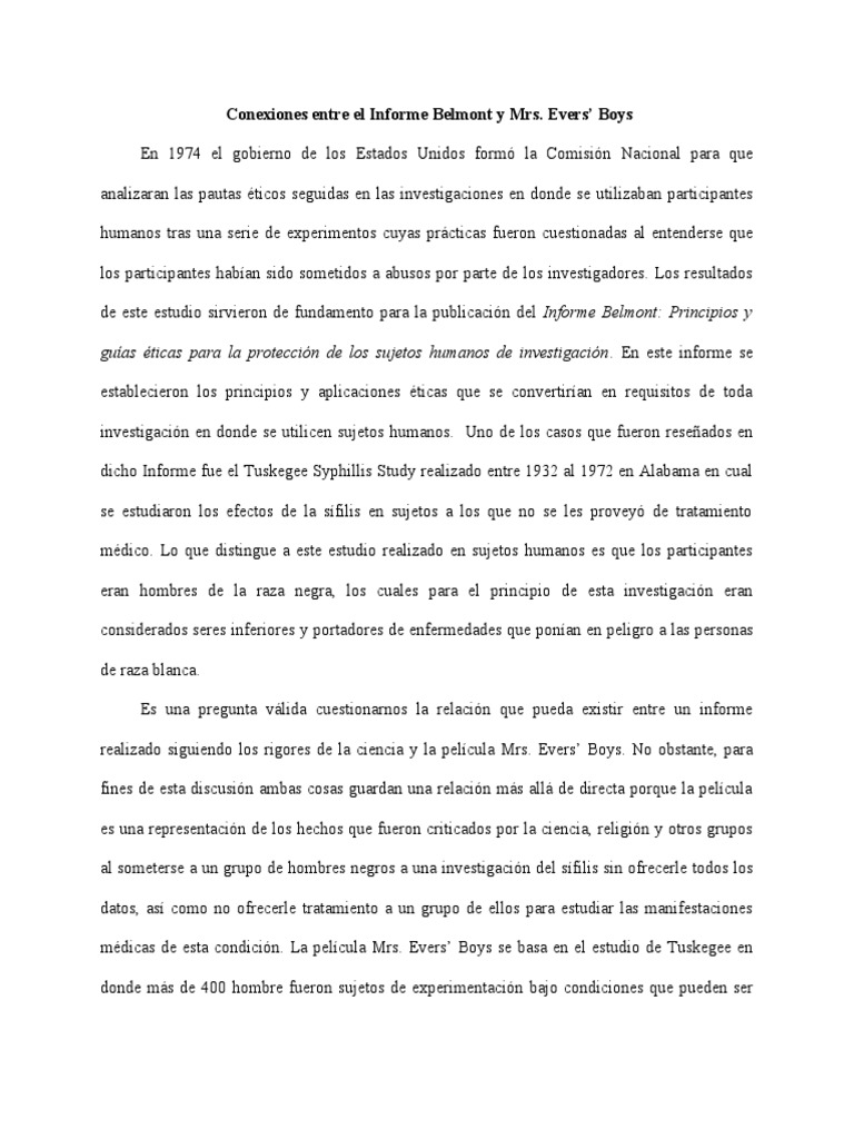 Conexiones entre el Informe Belmont y Mrs.