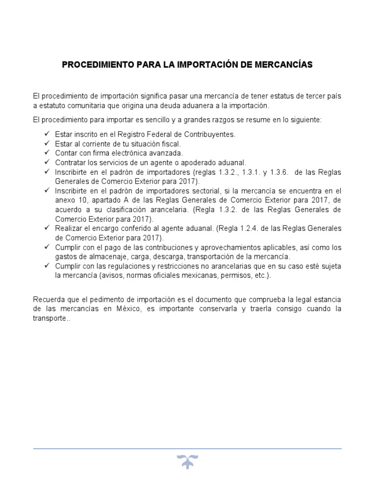 PROCEDIMIENTO PARA LA IMPORTACIÓN DE MERCANCÍAS