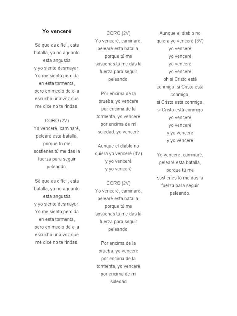 sostienes tú me das la quiera yo venceré (4V) Yo venceré, caminaré,