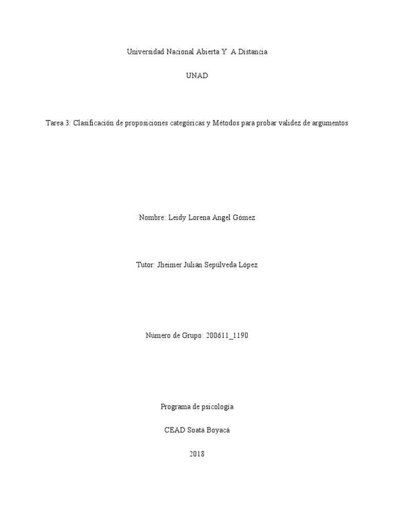Tarea 3: Clasificación de proposiciones categóricas y Métodos para probar validez de argumentos