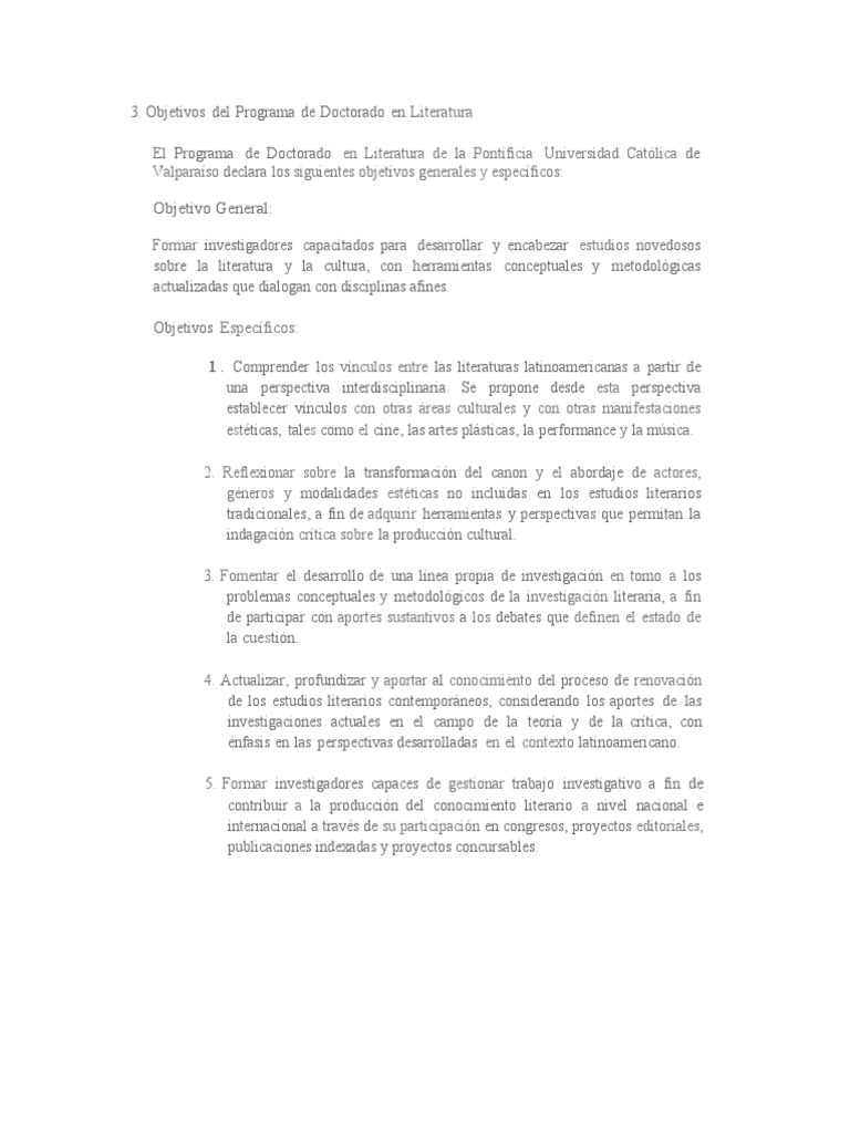 El Programa de Doctorado en Literatma de la Pontificia Universidad Católica de