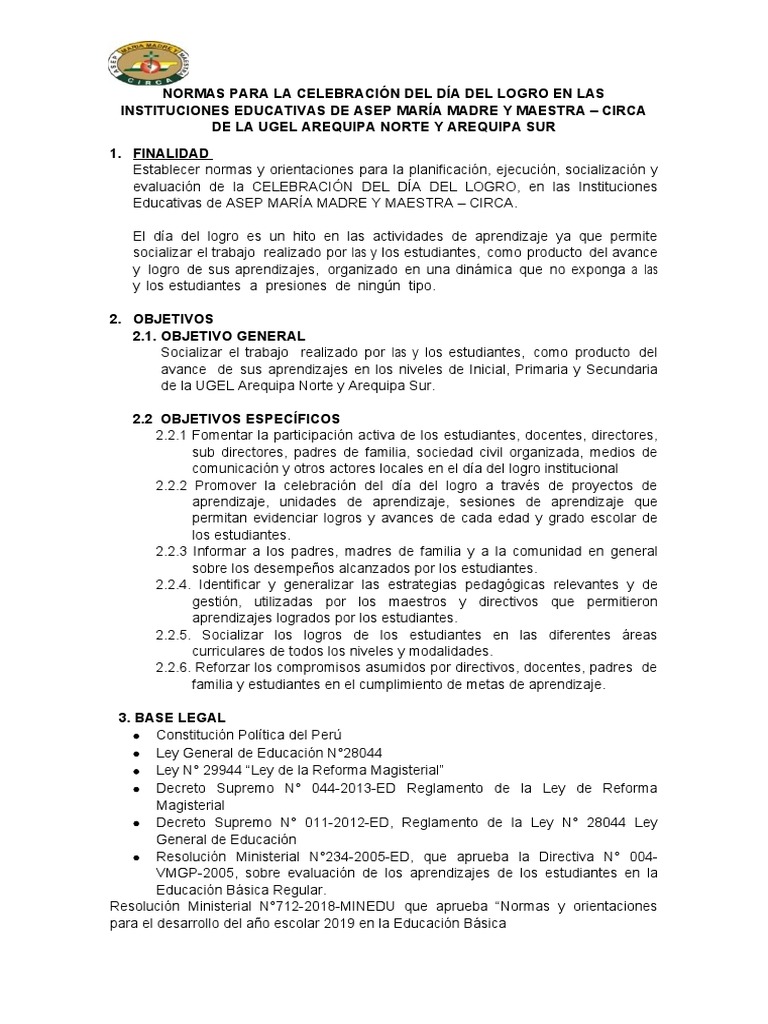 NORMAS PARA LA CELEBRACIÓN DEL DÍA DEL LOGRO EN LAS