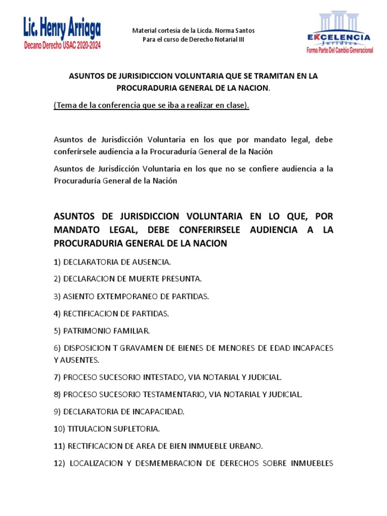 De conformidad con la ley, los procesos de jurisdicción voluntaria en lo que