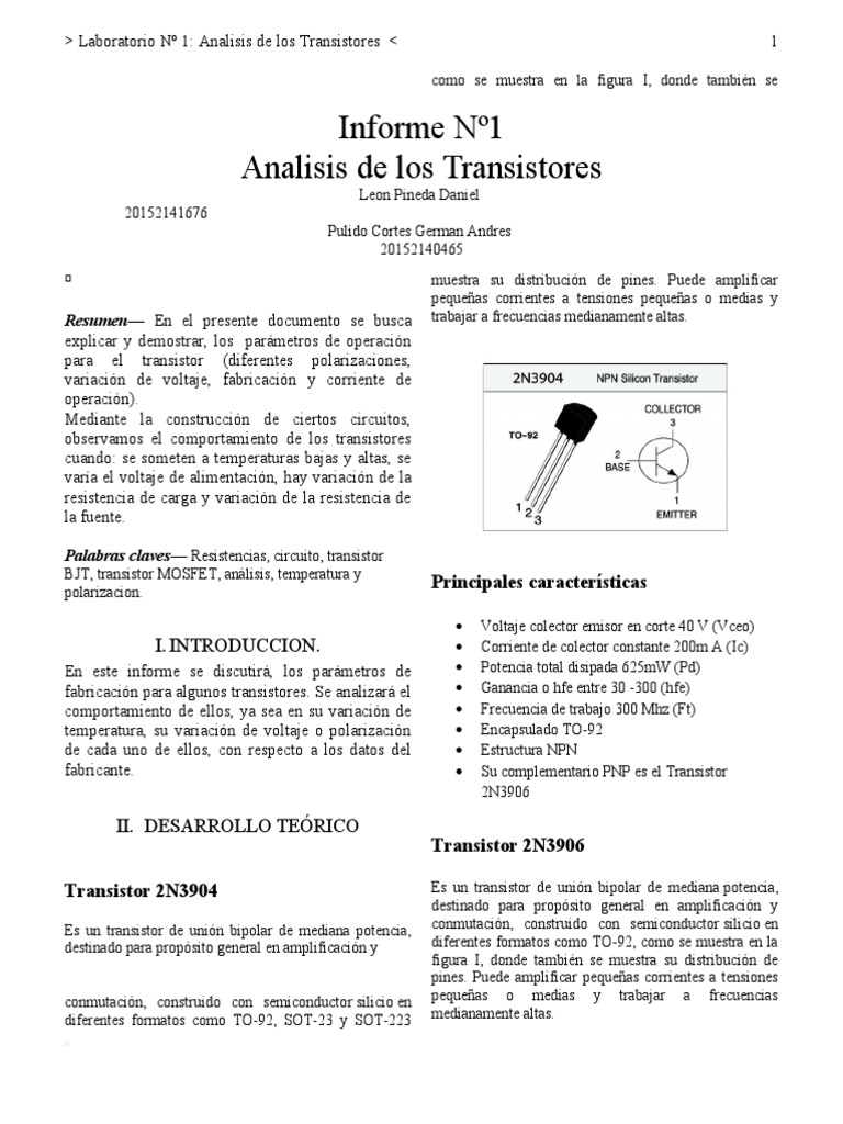 > Laboratorio Nº 1: Analisis de los Transistores < 11