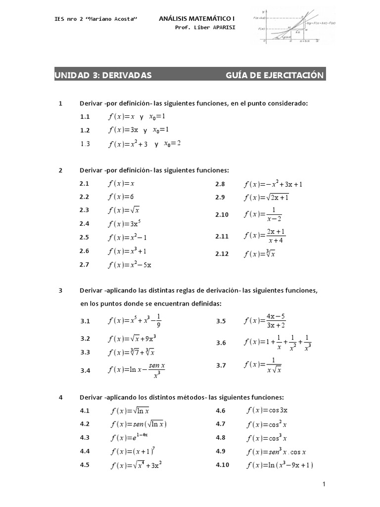 UNIDAD 3: DERIVADAS GUÍA DE EJERCITACIÓN