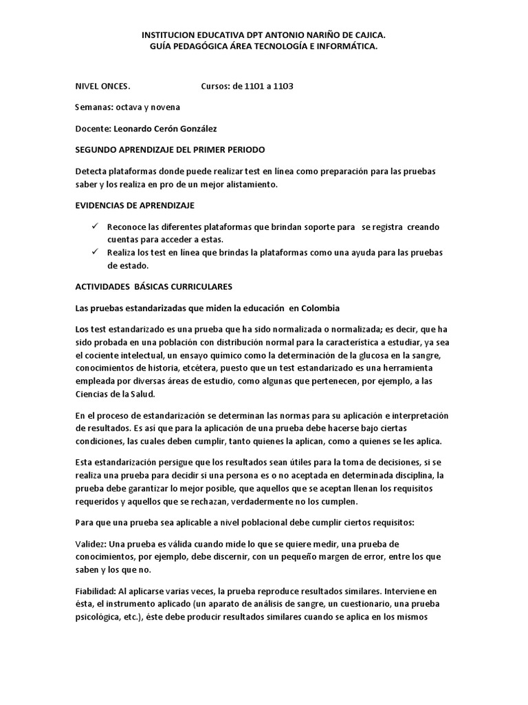 2. Que pruebas estandarizadas a nivel de Colombia e internacionales existen que midan