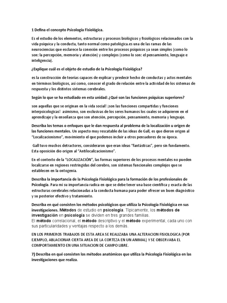Describa en qué consisten los métodos psicológicos que utiliza la Psicología Fisiológica en sus