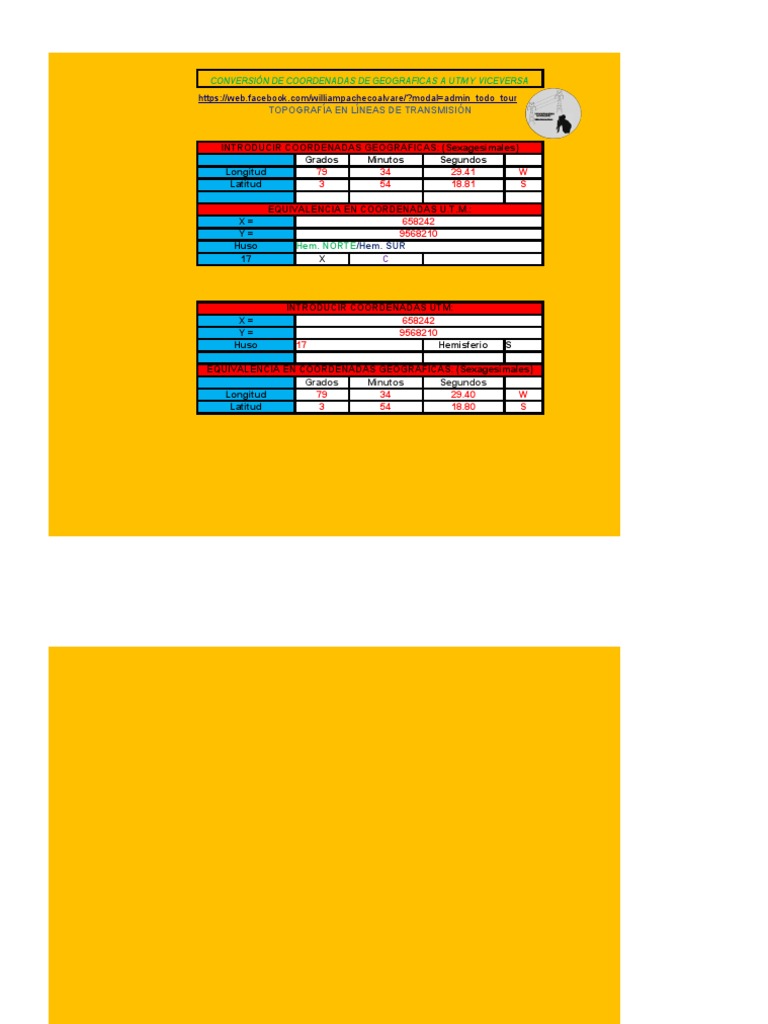 EQUIVALENCIA EN COORDENADAS U.T.M.: