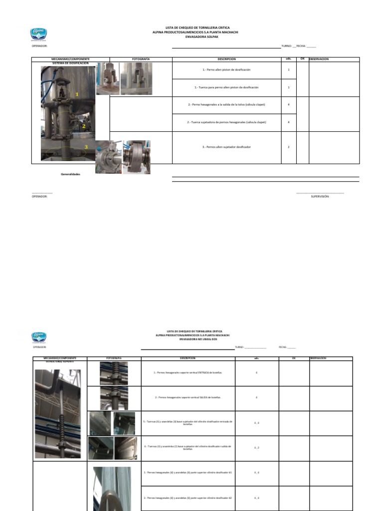 LISTA DE CHEQUEO DE TORNILLERIA CRITICA
