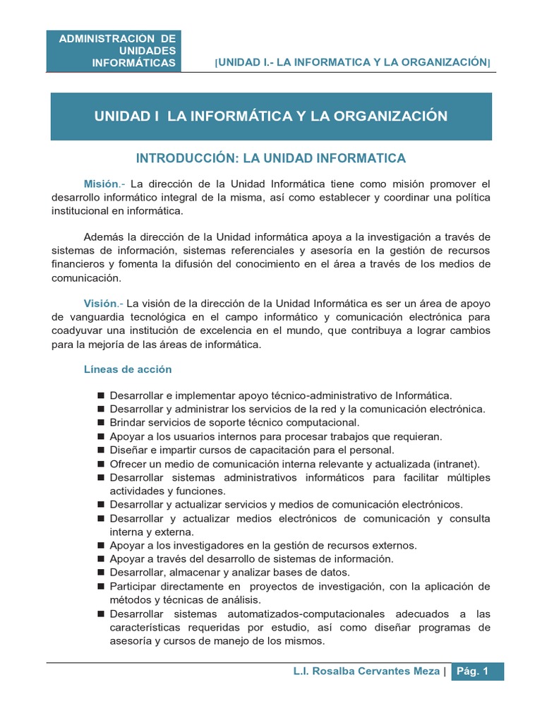 INTRODUCCIÓN: LA UNIDAD INFORMATICA