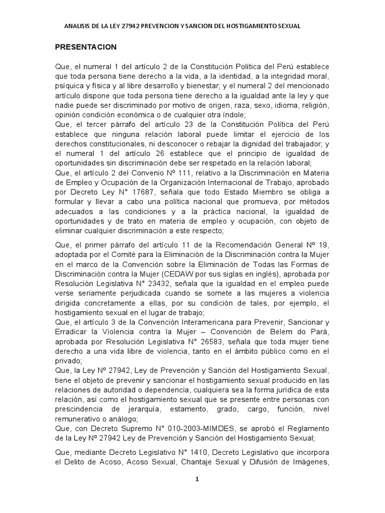 ANALISIS DE LA LEY 27942 PREVENCION Y SANCION DEL HOSTIGAMIENTO SEXUAL