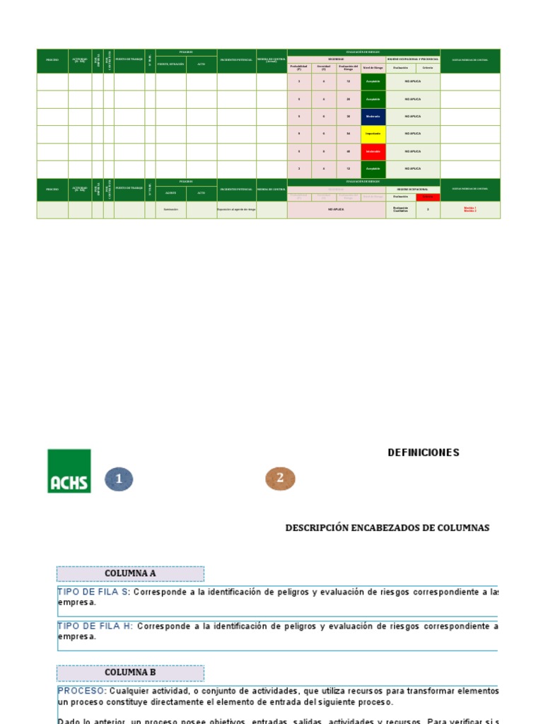 TIPO DE FILA S: Corresponde a la identificación de peligros y evaluación de riesgos correspondiente a las condicion