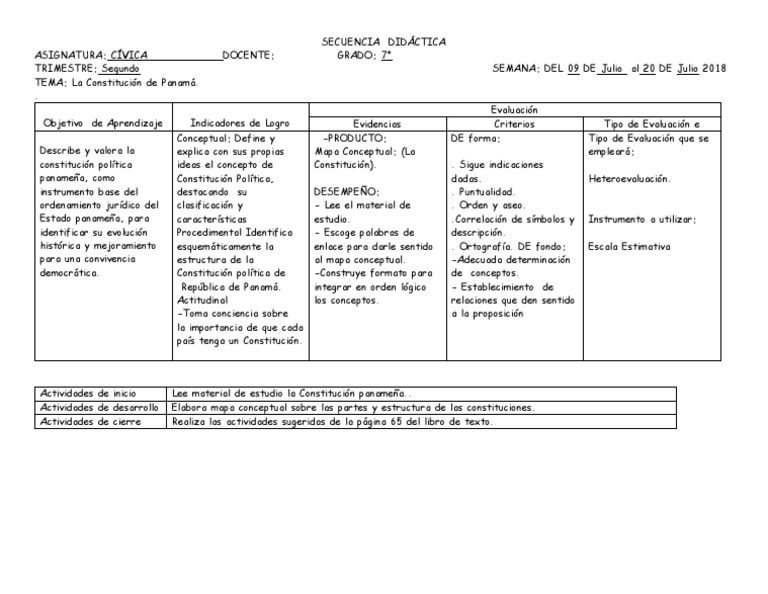 panameña, como Constitución Política, dadas. Heteroevaluación.