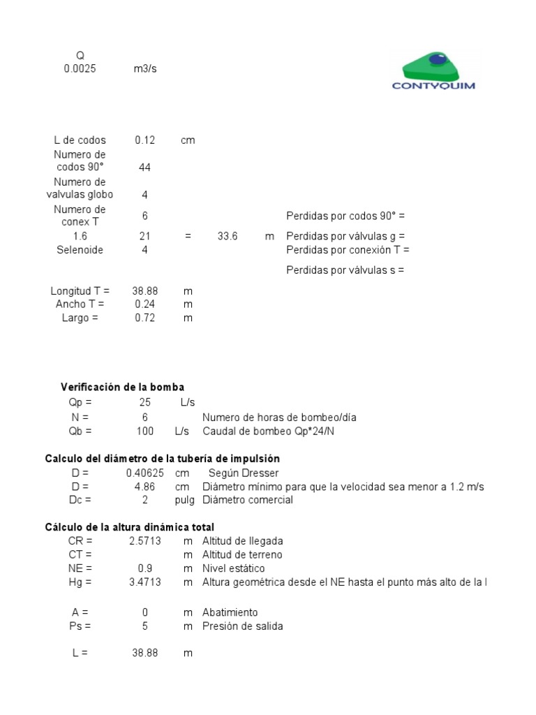 1.6 21 = 33.6 m Perdidas por válvulas g =