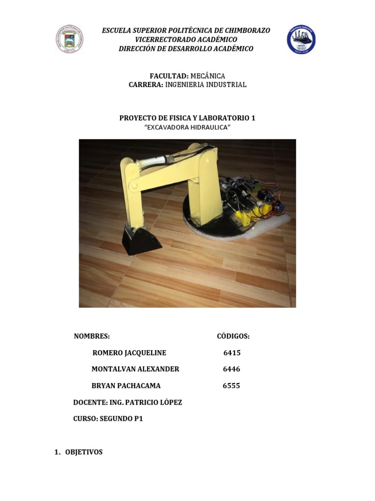 del prototipo de una excavadora en el cual se realizan cálculos con datos reales en