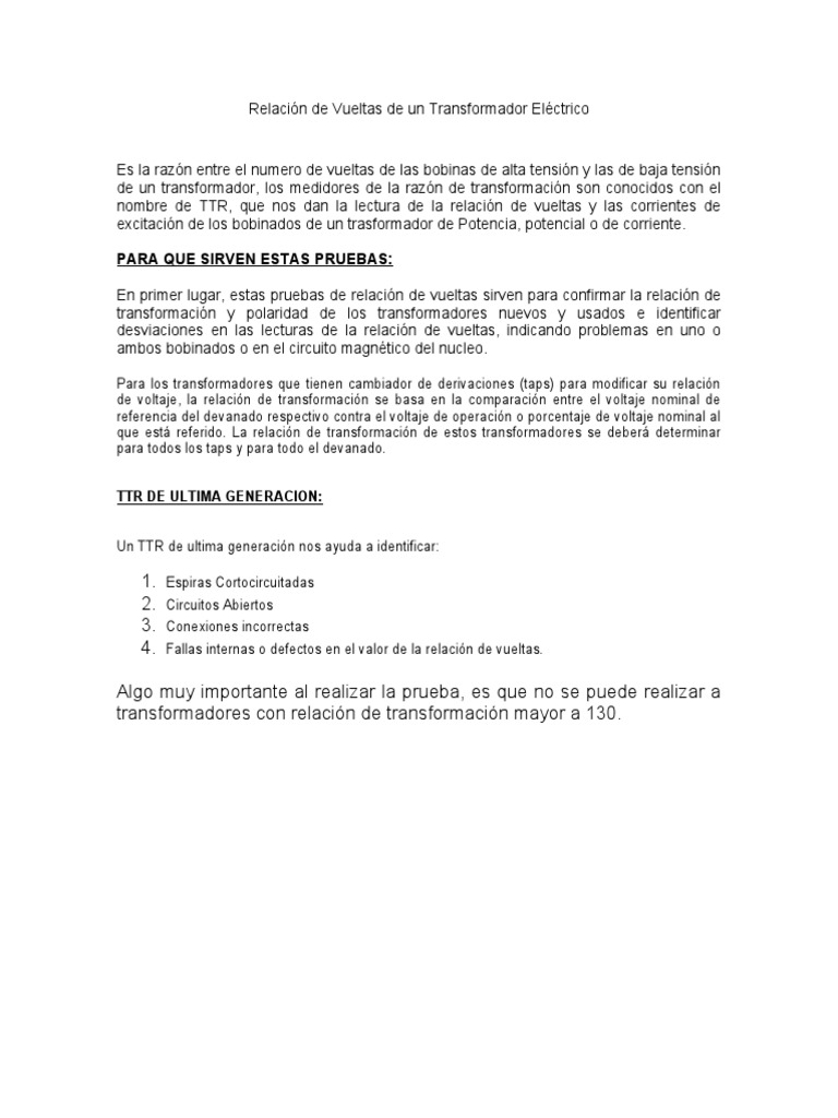 que está referido. La relación de transformación de estos transformadores se deberá determinar