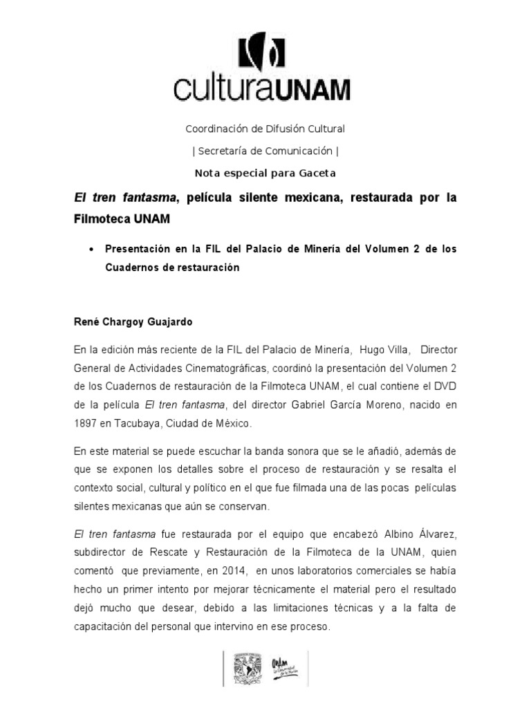 de los Cuadernos de restauración de la Filmoteca UNAM, el cual contiene el DVD