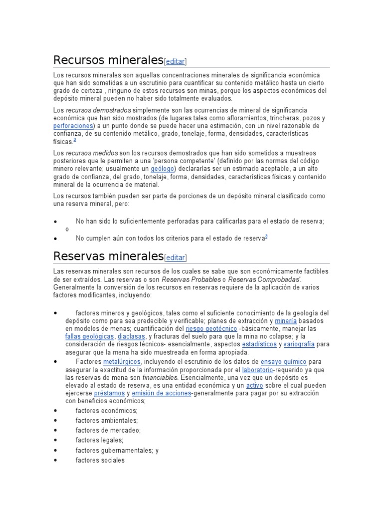 Las reservas minerales son recursos de los cuales se sabe que son económicamente factibles
