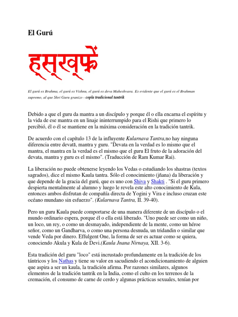 mantra, el mantra en la verdad es el mismo que el guru El fruto de la adoración del