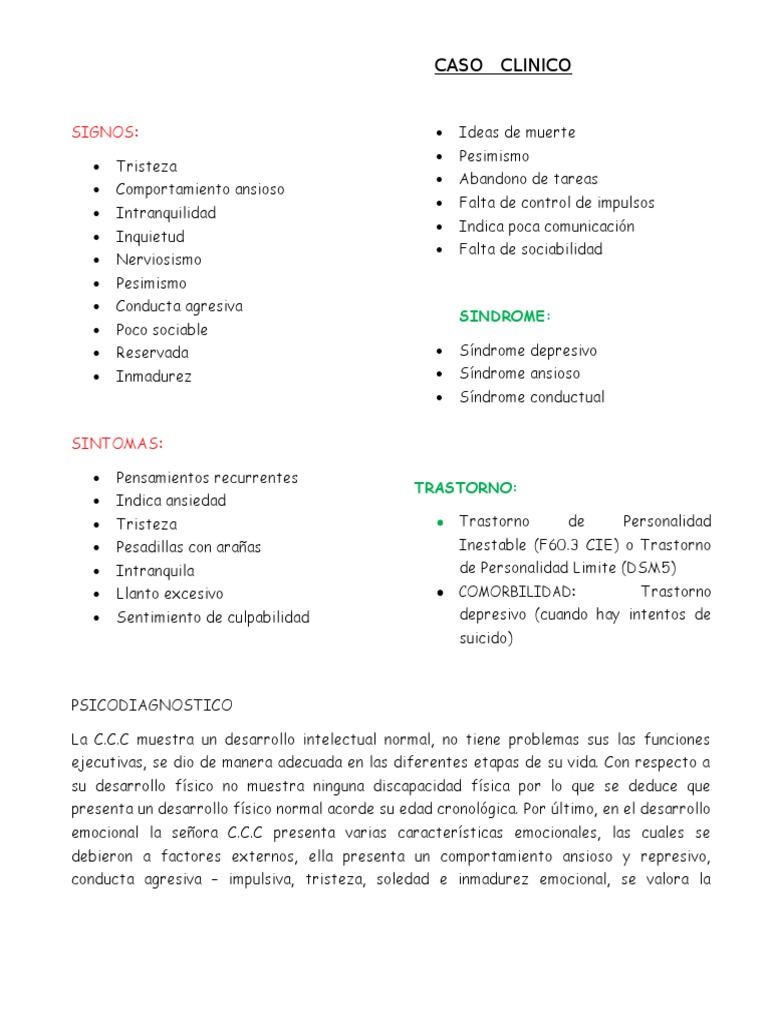 emocional la señora C.C.C presenta varias características emocionales, las cuales se