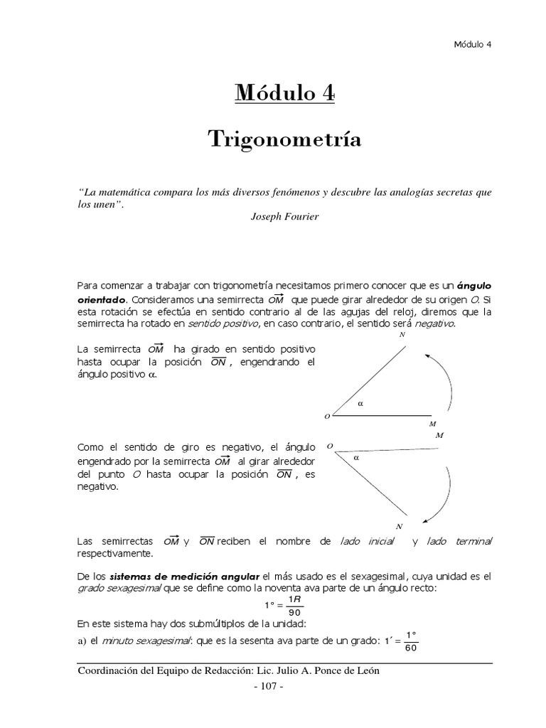 semirrecta ha rotado en sentido positivo, en caso contrario, el sentido será negativo.