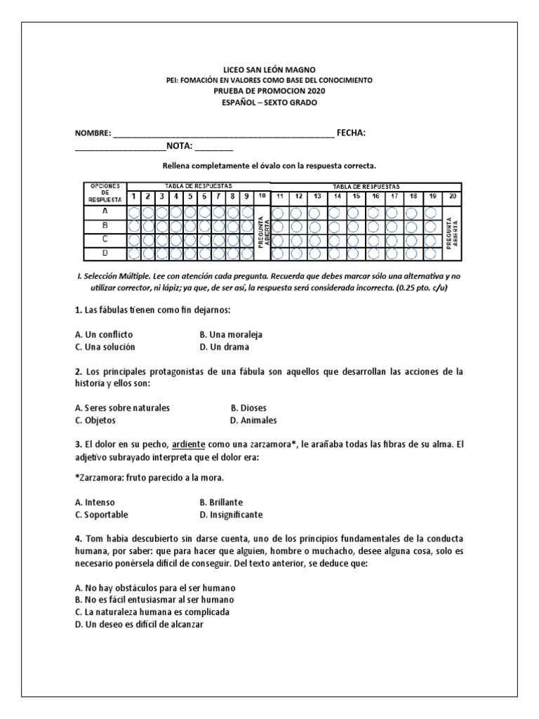 I. Selección Múltiple. Lee con atención cada pregunta. Recuerda que debes marcar sólo una alternativa y no