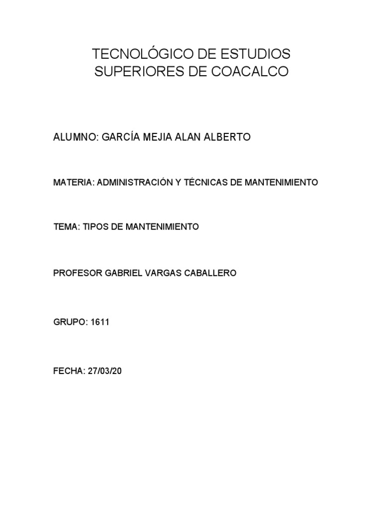 MATERIA: ADMINISTRACIÓN Y TÉCNICAS DE MANTENIMIENTO